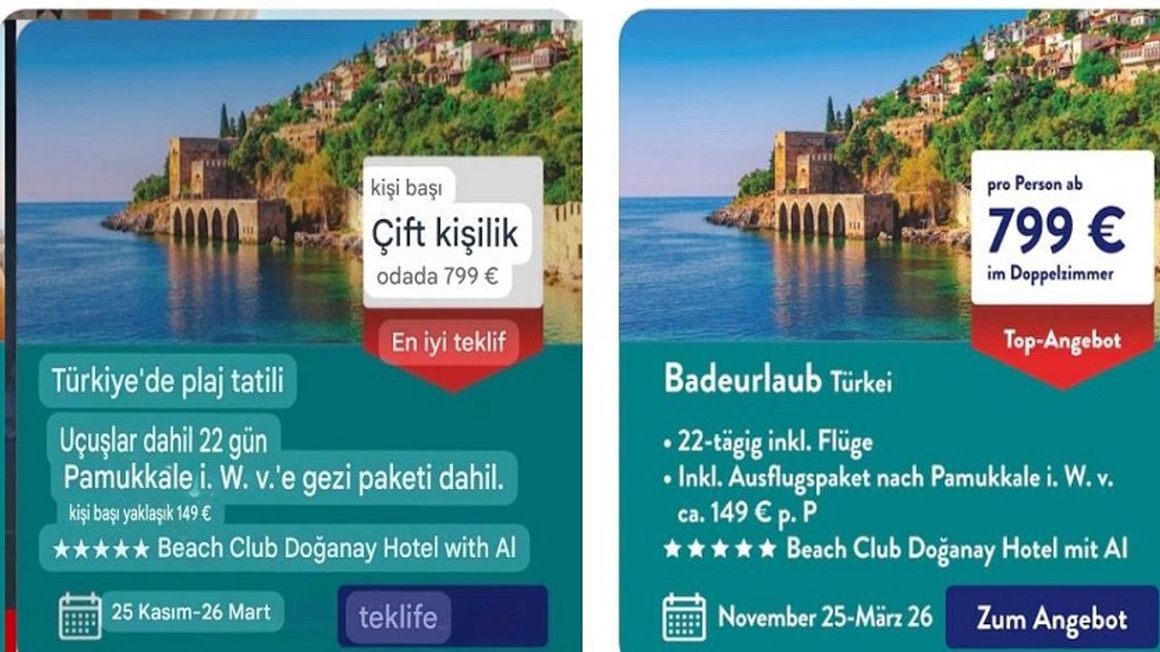Ayrıca isteyenler, Pamukkale turunu 149 Euro farkla programa ekleyebiliyor. Aynı katalogda Kapadokya için de 8 günlük tur 399 Euro’ya satılıyor.