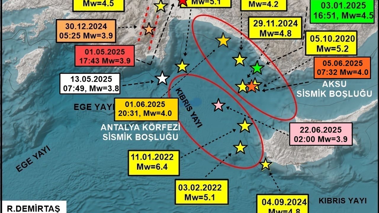Paleosismolog Dr. Ramazan Demirtaş, bölgede yaşanan son sarsıntıların 1996’da tanımlanan “Antalya Körfezi sismik boşluğu” içinde yer aldığını belirterek, 7.0 ve üzeri büyüklükte bir depremin potansiyel olarak üretilebileceği uyarısında bulundu.