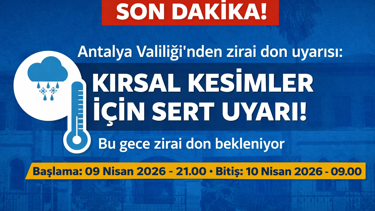 Antalya’da tarımla uğraşan üreticileri yakından ilgilendiren önemli bir meteorolojik uyarı yapıldı. Antalya Valiliği, Meteoroloji 4. Bölge Müdürlüğü’nden alınan bilgiler doğrultusunda, ilin iç ve yüksek kesimlerinde yer yer hafif zirai don hadisesi beklendiğini açıkladı.
