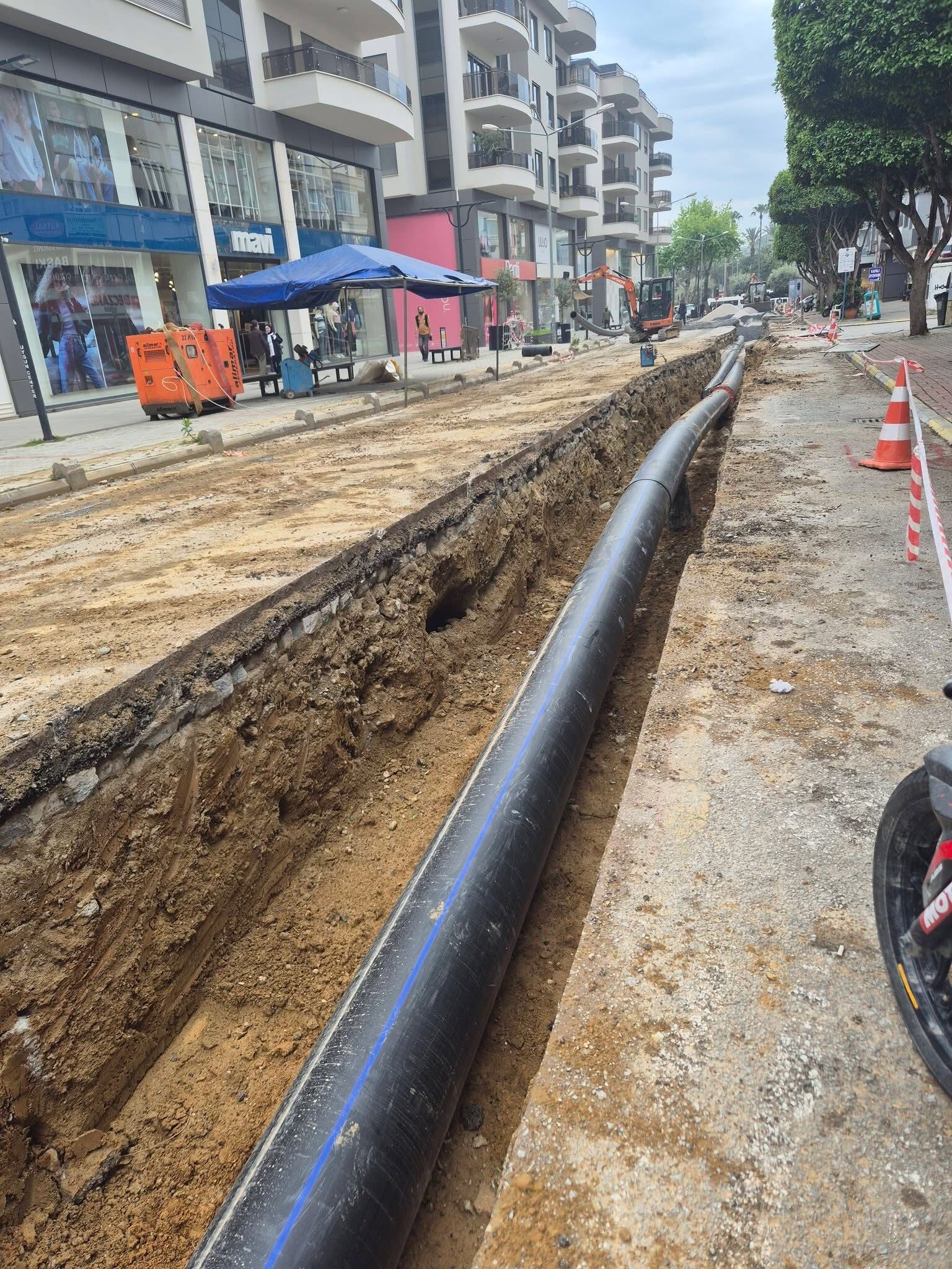 Sahadan paylaşılan görüntülerde, cadde boyunca açılan derin kazı hattı ve döşenen büyük çaplı borular dikkat çekti. Çalışmalar kapsamında eski altyapının tamamen yenilendiği görülürken, iş makineleri ve ekiplerin yoğun mesaisi de objektiflere yansıdı.