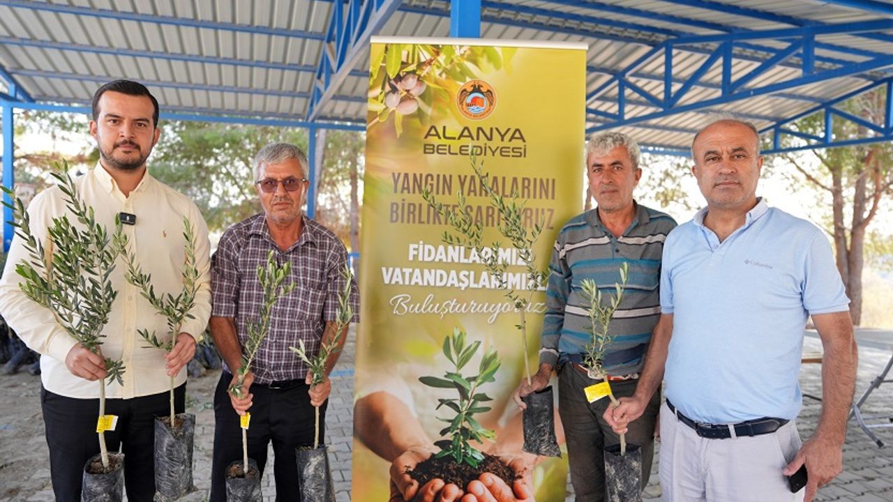 Alanya Belediyesi Tabi Afetlerden Zarar Görenlere Ait Komisyon tarafından belirlenen liste neticesinde yangın bölgesinde zarar gören vatandaşlara zeytin dağıtımı gerçekleştiriliyor. Aliefendi Mahallesi’nde gerçekleşen etkinlikte 3400 adet zeytin fidanı halka teslim edilirken toplamda 10 bin adet zeytin fidanı dağıtılacağı açıklandı.
