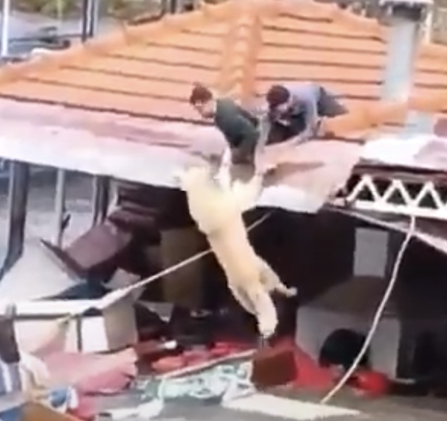 Yağışların ardından debisi yükselen çayda akıntıya kapılan köpek, saniyeler içinde yaşam mücadelesi verdi. O sırada çevrede bulunan iki kişi, suyun şiddetine aldırış etmeden çatıdan sarkarak hayvana ulaştı. Nefes kesen anlar cep telefonu kamerasına yansırken, kurtarma anı binlerce kez paylaşıldı.