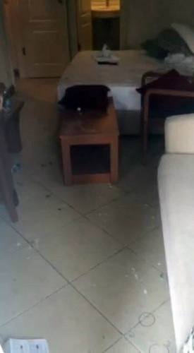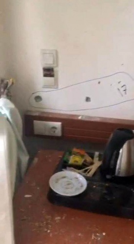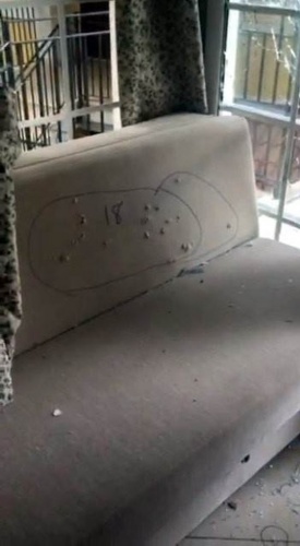 Korumaların kullandığı odaya ilişkin görüntülerde, duvarlar ve eşyaların üzerinde çok sayıdaki kurşun izi ve kırık camlar dikkat çekiyor..