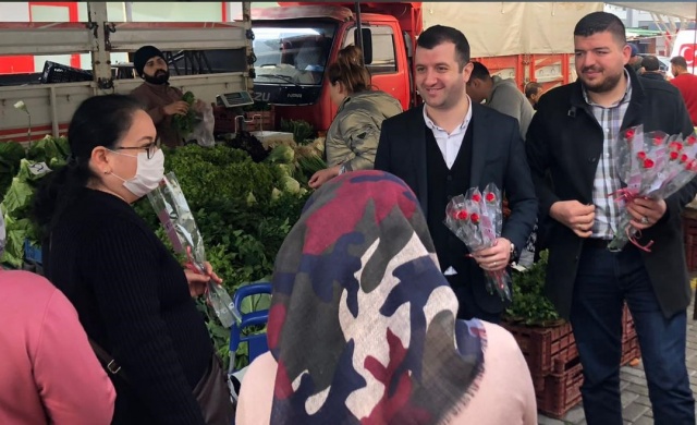 AK Parti Alanya İlçe Gençlik Kolları Yönetimi 8 Mart Dünya Kadınlar Günü vesilesiyle pazar yerlerinde çalışan kadınlara gül dağıttı.