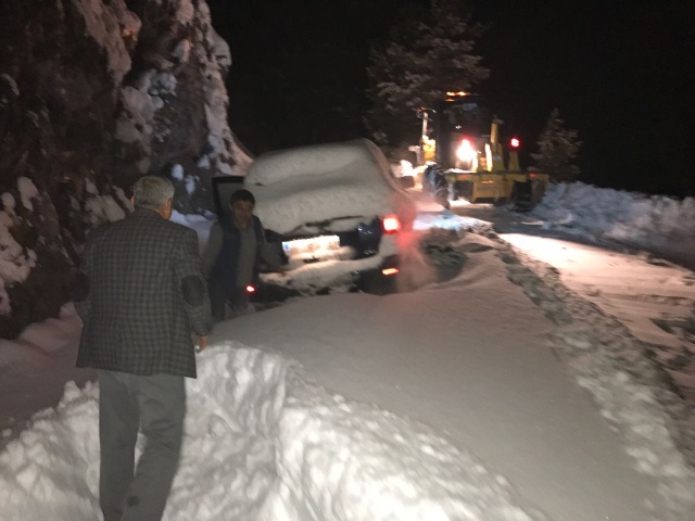 Kar seviyesinin 60 cm’ye ulaştığı Alanya’ya 17 km uzaklıktaki Gedevet Yaylası ve çevresindeki mahallelere giden yolu açan Büyükşehir Belediyesi, Alanya’ya 40 km. uzaklıkta bulunan Taşatan Hacı Beleni mevkiinde yoğun kar yağışı nedeniyle araçlarıyla yolda mahsur kalan iki kişiyi kurtarmak için tam saat çalıştı.