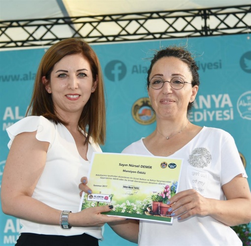Alanya Belediyesi tarafından düzenlenen En Güzel Balkon-Bahçe Yarışması’nda derece giren yarışmacılara daha önce belirlenen miktarlarda para ödülü, plaket ve çiçek verildi. Her iki kategoride de para ödülü değişmezken birinciye 2000 TL, ikinciye 1500 TL ve üçüncüye de 1000 TL ödül verildi.