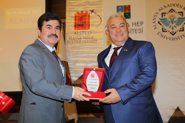 Açılış toplantısında ALKÜ Rektörü Prof Dr Ekrem Kalan ve TURSAF ve ALSTUD Başkanı Dr Tevfik Yazan, ALTSO Başkanı Mehmet Şahin’e bugüne kadar sağlık alanında yaptığı başarılı çalışmaların yanı sıra çalıştayın Alanya’da yapılmasındaki emekleri nedeniyle teşekkür plaketi takdim ettiler.