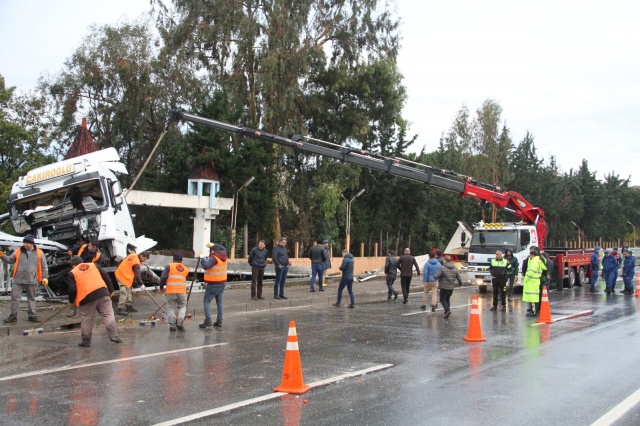 D-400 karayolu trafiği bir süre tek şeritten yönlendirilirken bariyere saplanan tır çekici yardımıyla kaldırıldı. Yola savrulan sebze ve meyveler ise belediye ekipleri tarafından temizlendi. Polis kazayla soruşturma başlattı.