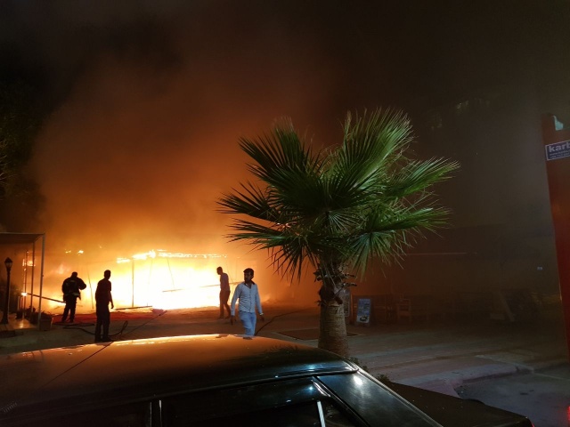 Barakaların hemen yanında bulunan otele yangının sıçramamsı içinekipler yoğun çaba sarfetti