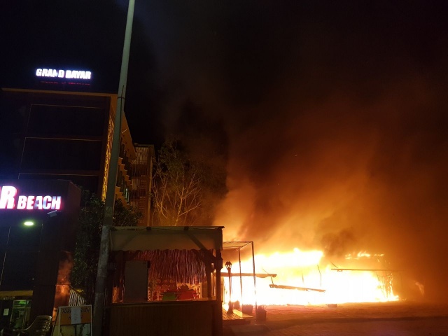Alanya Oba Göl mevkiinde bulunan Grand bayar otelin yanında barakalarda dün gece yangın çıktı