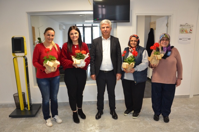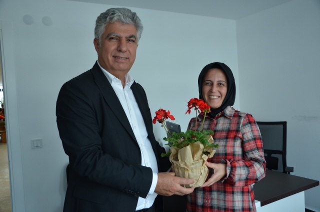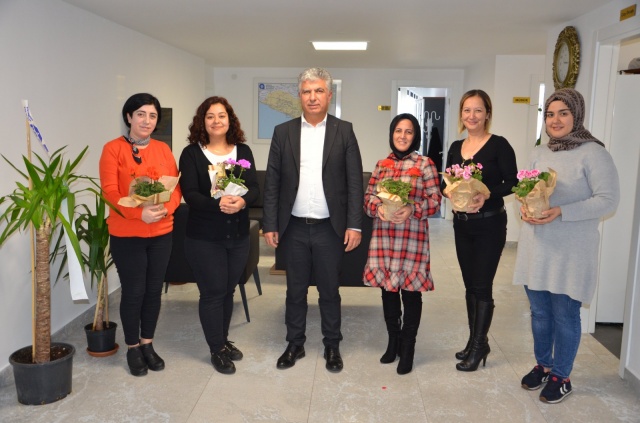 Başkan Muhittin Böcek, kadınlar gününü kutlarken, çalışan personeline çiçekle teşekkür etti.