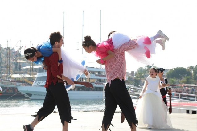 Yaşları 5 ile 13 arasında değişen çocuklar tarafından hazırlanan “Korsanlar ve Prensesler” isimli oyunun bir bölümü karada bir bölümü ise denizde oynandı. Belediye Binası arkasında bulunan Sahil Güvenlik Bot Komutanlığı’nın bulunduğu iskele meydanında başlayan oyun özel bir gemide devam etti.