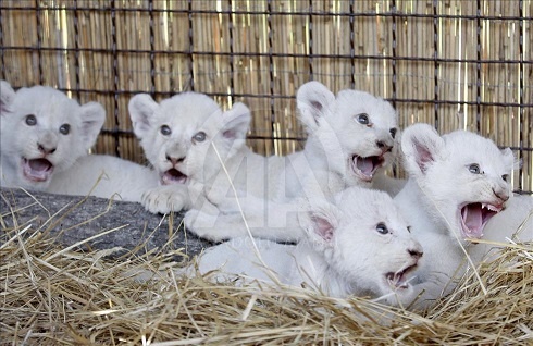 Ukrayna' nın Kiev şehrinde yer alan 'XII months' Hayvanat Bahçesi' ndeki 5 adet yavru beyaz aslan ziyaretçiler tarafından oldukça ilgi görüyor. ( Vladimir Shtanko - Anadolu Ajansı )