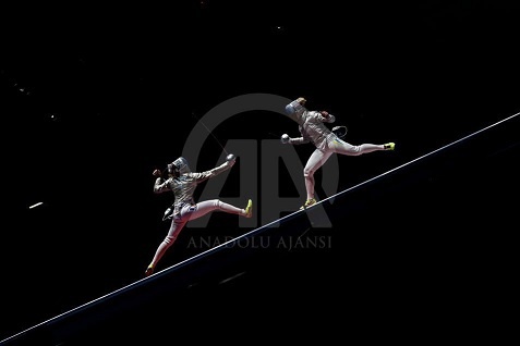 Rio 2016 Yaz Oyunları Brezilya'nın Rio De Janeiro kentinde devam ediyor. Kadınlar Eskrimde Ukraynalı sporcu Olga Kharlan (sağda), Fransız Eskrimci Manon Brunet'i (solda) yenerek bronz madalya kazandı. ( Salih Zeki Fazlıoğlu - Anadolu Ajansı )