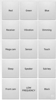 Telefonun test aşamasında kullanılan bu kodlar ile birlikte örneğin Red butonuna tıklayarak ekranı kıpkırmızı yapabiliyorsunuz.