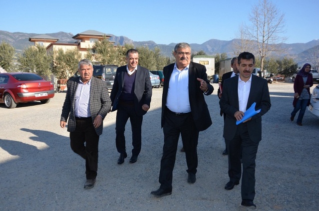 Alanya Koordinatörü Hüseyin Güney’le birlikte Tosmur’da bulunan şantiye binasına giden Ekici, yapımı devam eden Belediye Misafirhanesi, Aş Evi binalarını gezdi.