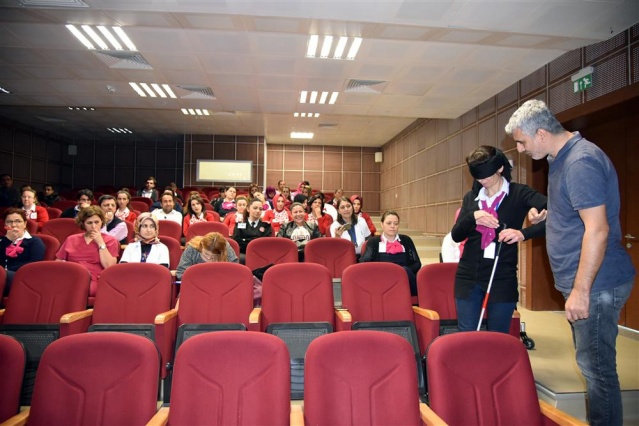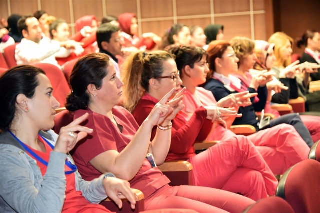 Toplumda Engelli Farkındalığı seminerinde işitme engellilerin dünyası ve temel işaret dili çalışmalarından harfler, sayılar, günlük diyalog konuşmaları hastane personeline anlatıldı. Uygulamaların eşlik ettiği çalışmada personelin katılımı sağlanarak engelli bireylerin psikolojileri, yaşam içerinde karşılaştıkları güçlükler, doğru yardım teknikleri konularında bilgilendirme yapıldı.