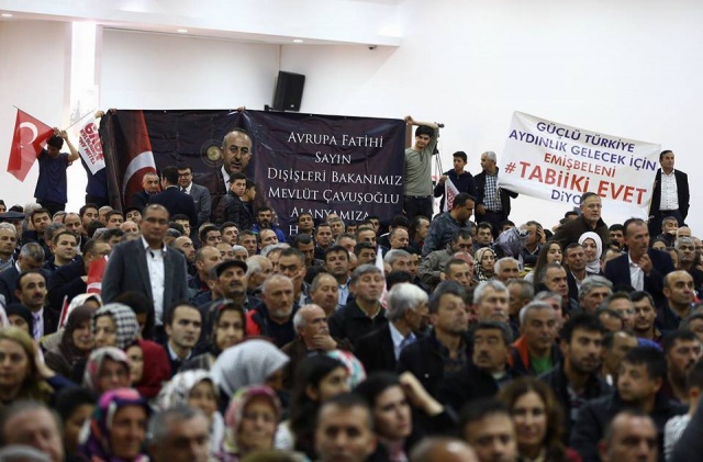 Türkiye için hayati derecede önemli olan referandum öncesi kendi köyünde hemşerileriyle olmak istediğini aktaran Çavuşoğlu," 15 yıl devletimiz, milletimiz için çok önemli dönüm noktalarında hep birlikte olduk. Alanyalılar vatanını milletini her şeyin üstünde tutar. Böyle bir Alanya ve Antalya'ya hizmet etmekten onur duyuyoruz. Çok güzel hizmetler yaptık. Sağ olsun Alanya' da bizi yalnız bırakmadı" dedi.