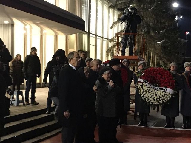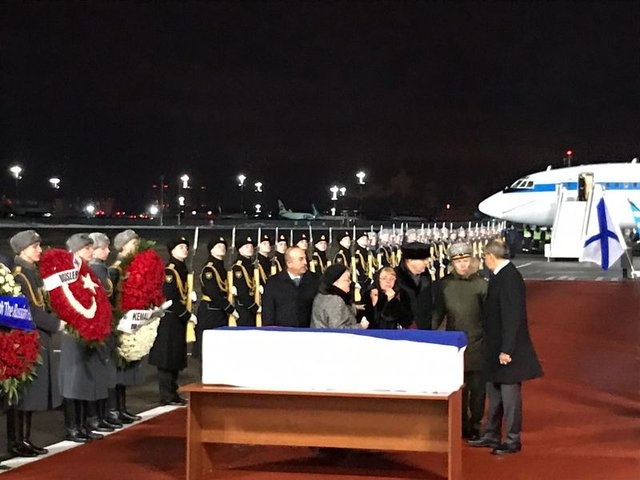 Ankara Esenboğa Havalimanı'nda düzenlenen devlet töreniyle Moskova'ya uğurlanan Karlov'un naaşını taşıyan uçağı Dışişleri Bakanı Mevlüt Çavuşoğlu ve Rusya Dışişleri Bakanı Sergey Lavrov, Vnukovo Havalimanı'nda karşıladı.