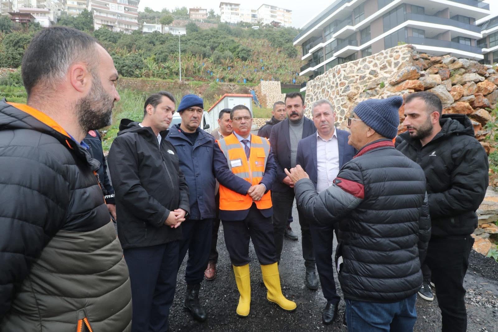 İncelemelere; Emniyet, Jandarma, Antalya Büyükşehir Belediyesi, Alanya Belediyesi, DSİ, Karayolları, İtfaiye yetkilileri ve ilgili kurum amirleri de eşlik etti. İlçede yağışların etkisini sürdürmesi ihtimaline karşı ekiplerin hazır bekletildiği bildirildi.