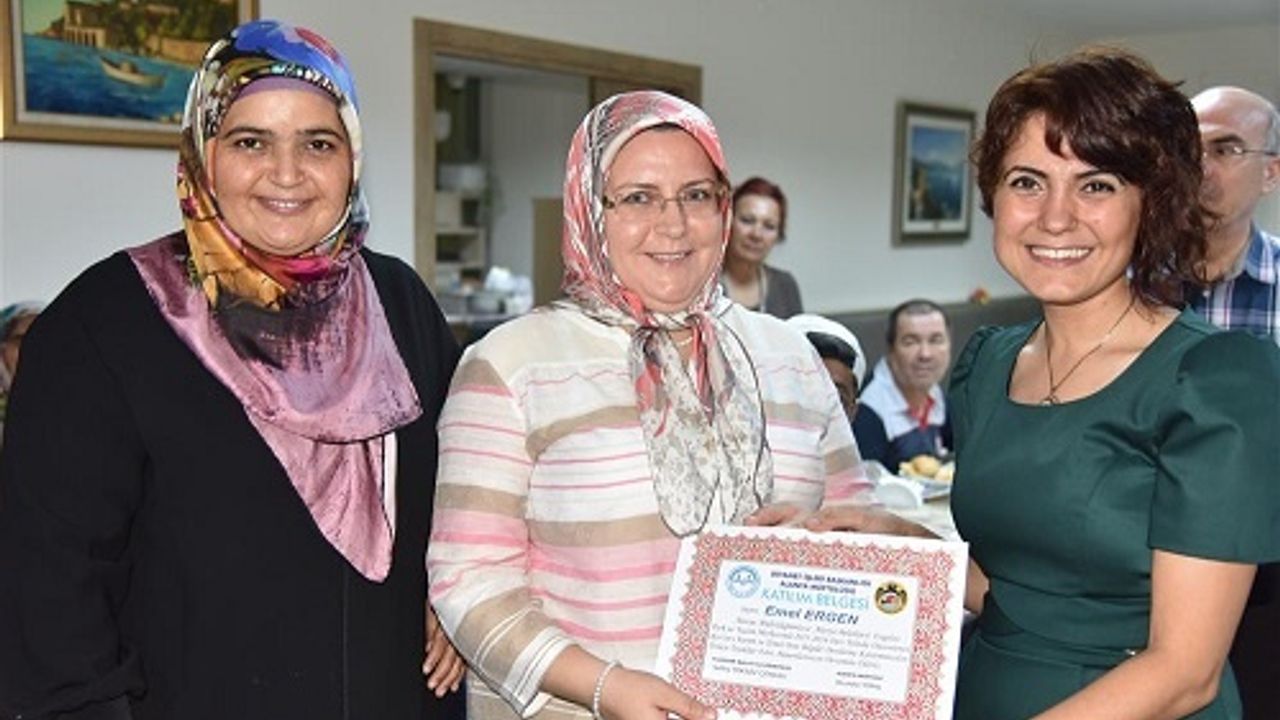 Alanya Belediyesi Engelsiz Park ve Yaşam Merkezi’nde gerçekleşen İftar yemeğinin ardından Kuran’ı Kerîm kursuna katılan 18 kayıtlı kursiyere katılımcı sertifikası verildi.