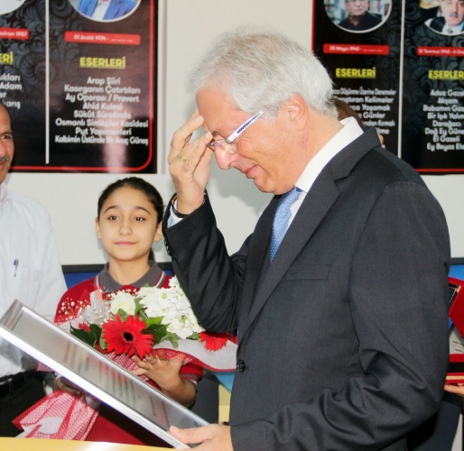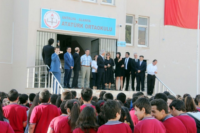 Alanya doğumlu olan Yaşar Holding yöneticisi Hasan Girenes, yakın dostu Avukat Mehmet Gün'ün kendi adına sürpriz yapıp Atatürk Ortaokulu'na hediye ettiği Z Kütüphane'nin açılışında gözyaşlarına hakim olamadı"