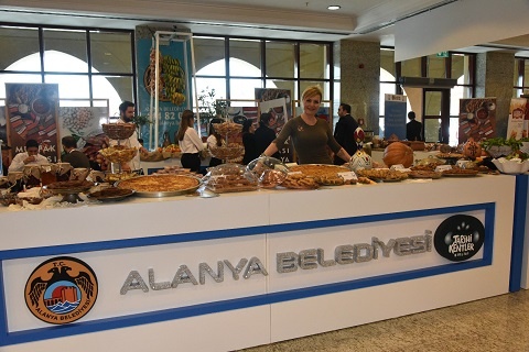 Alanya Belediyesi’nin fuar alanına kurduğu dev Alanya Geleneksel Mutfağı standında Alanya’nın yöresel tatları buluşmaya katılanlara tanıtıldı. Kurulan stantta Alanya’ya özgü 108 çeşit yemek ve yöresel tatlar katılımcılara sunuldu. Standı Dışişleri Bakanı Mevlüt Çavuşoğlu, Alanya eski kaymakamlarından Avcılar Kaymakamı Hulusi Doğan, Alanyalı Başakşehir Belediye Başkanı Mevlüt Uysal, sosyete kasabı olarak ünlenen Günaydın Restoranlarının Sahibi Cüneyt Asan, Televizyon Programcısı Seda Akgül ile eski Türkiye güzeli ve dizi oyuncusu Zerrin Arbaş da ziyaret etti.
