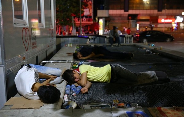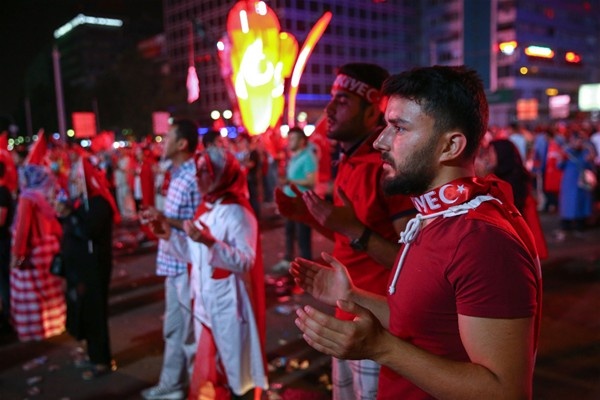 Ankara'da Kızılay Meydanı'nda toplanan vatandaşlar, FETÖ'nün darbe girişimini protesto etmeye devam etti. Akşam saatlerinde meydanda toplana vatandaşlar, meydanda sabahladı.