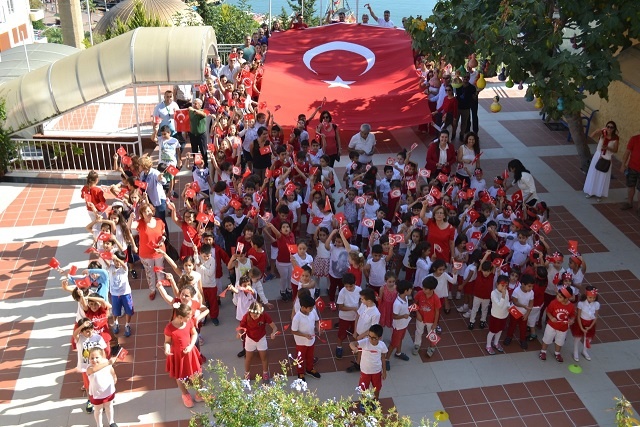 İzleyenlerin duyguları anlar yaşadığı törende,öğrencilerin de kırmızı-beyaz ağırlıklı giyinmeleri gösterilerin en dikkat çeken taraflarındandı.