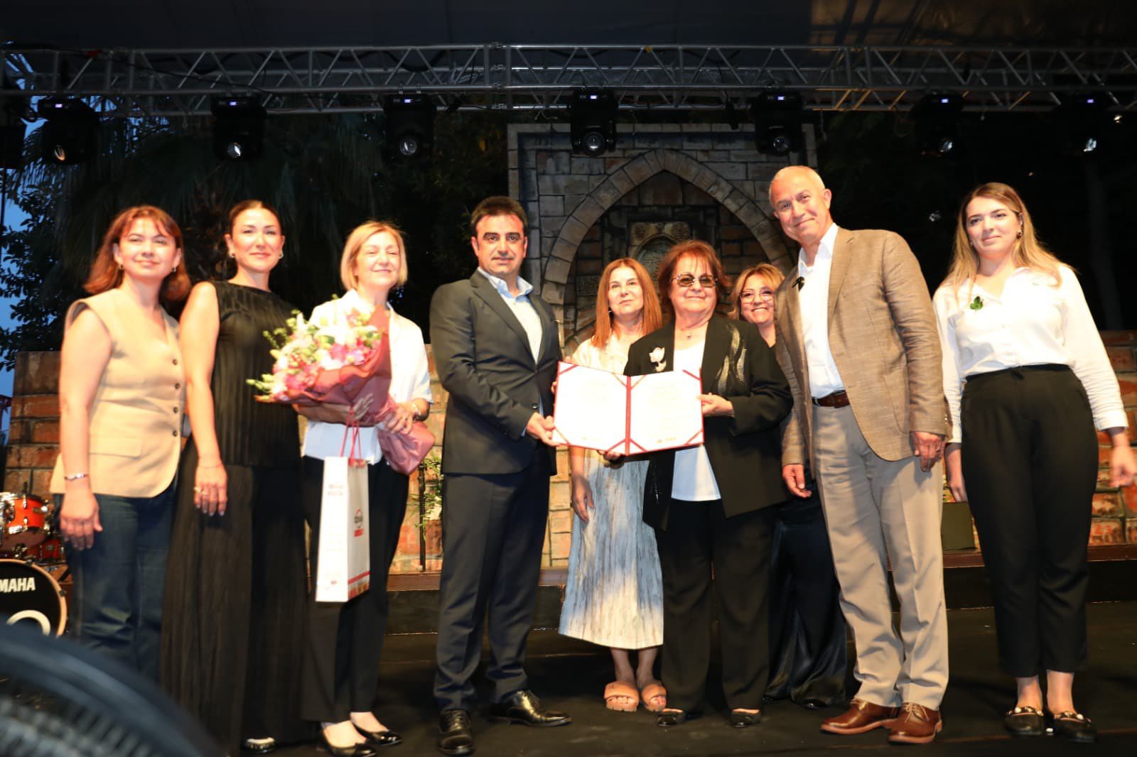 Geçtiğimiz yıl başlatılan ve ilkini Tarihçi Yazar Haşim Yetkin’in aldığı Yaşam Boyu Topluma Hizmet Ödülü’nün ikincisi Alanya Kadınları Yardımlaşma Derneği Başkanı Nurcan Okan’a verildi. Kaymakam Vekili Selami Korkutata ve Belediye Başkanı Osman Tarık Özçelik ödülü alkışlar eşliğinde Okan’a takdim ettiler.