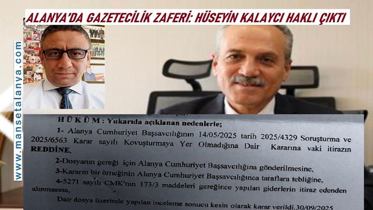 ALANYA’DA GAZETECİLİK ZAFERİ: HÜSEYİN KALAYCI HAKLI ÇIKTI