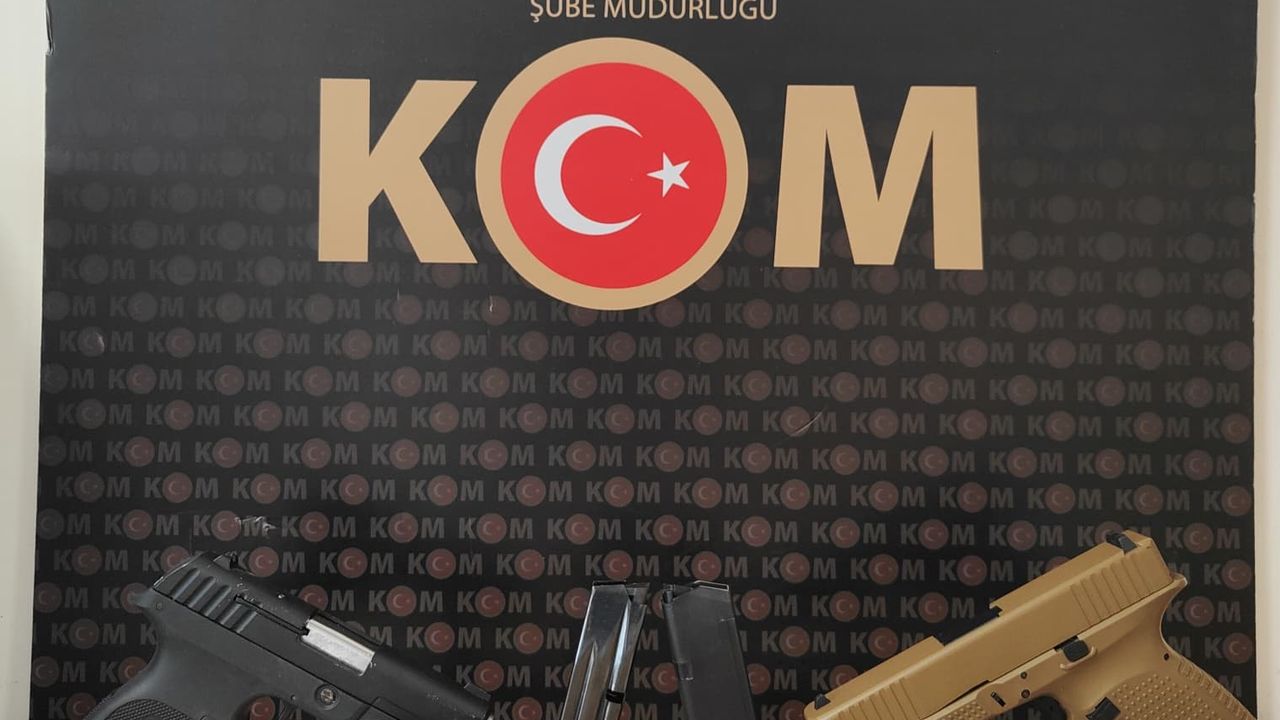 Adreslerde yapılan aramalarda 2 ruhsatsız tabanca, 2 şarjör ve 8 fişek ele geçirildi.