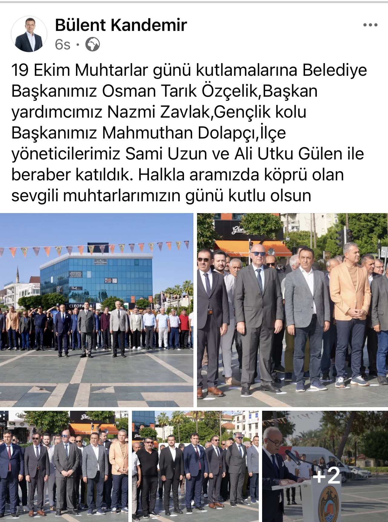 CHP Alanya İlçe Başkanı Bülent Kandemir, MHP Alanya İlçe Başkanı Mustafa Sümbül ve AK Parti Alanya İlçe Başkanı Mehmet Şarani Tavlı ile yan yana yer aldığı kareyi hiç kesintisiz olarak sosyal medya hesabından paylaştı.