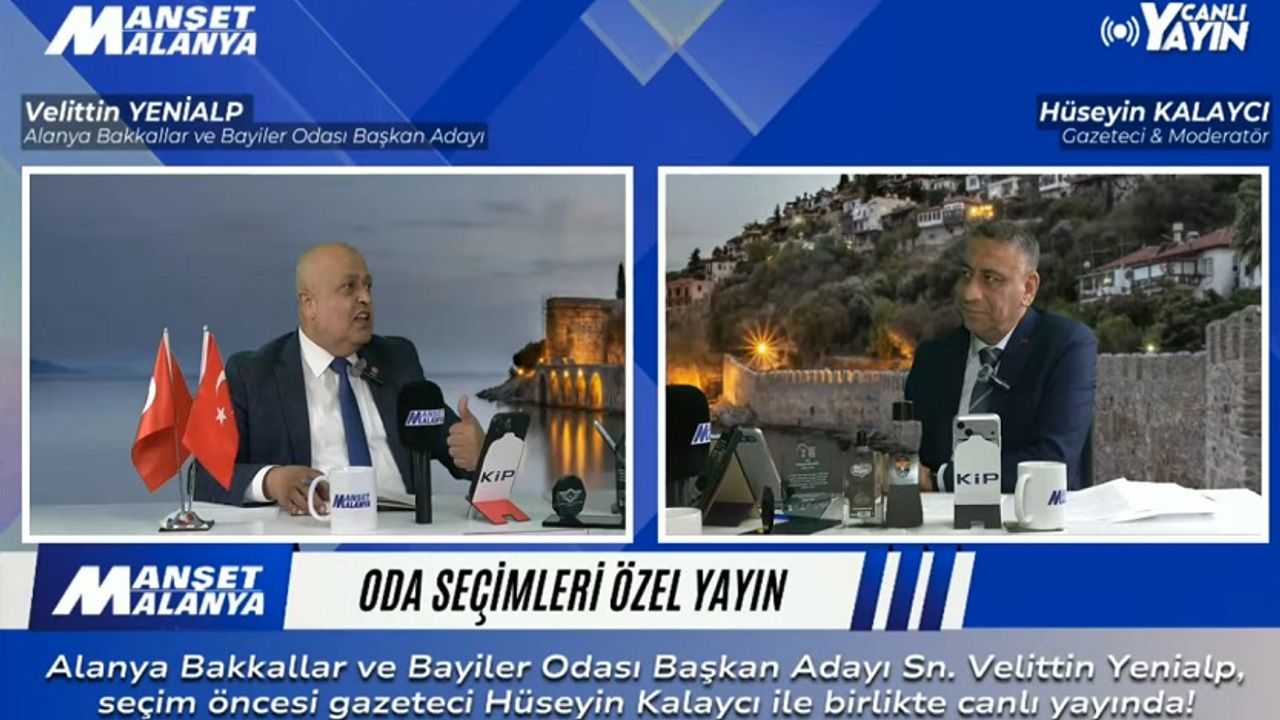 Medya Alanya Bakkallar ve Bayiler Odası Başkan adayı Velittin Yenialp, Manşet Alanya canlı yayın konuğu Yeinlap, Gazeteci Hüseyin Kalaycı'nın sorularını canlı yayında yanıtladı 10.01.2026 - 18:25 10.01.2026 - 18:25