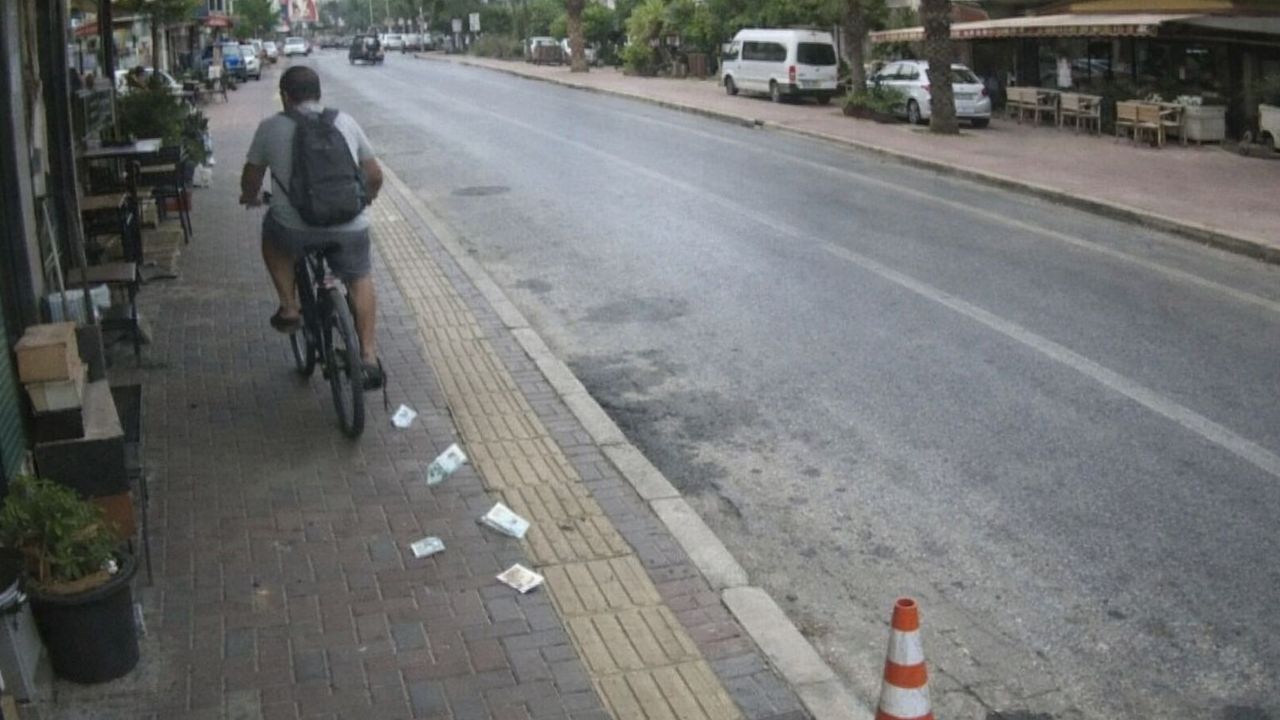 Edinilen bilgilere göre olay Mahmutlar Mahallesi’nde meydana geldi. Bir iş yerinin güvenlik kameralarına yansıyan görüntülerde, bisiklet kullanan bir vatandaşın farkında olmadan cebindeki parayı yere düşürdüğü anlar yer aldı....