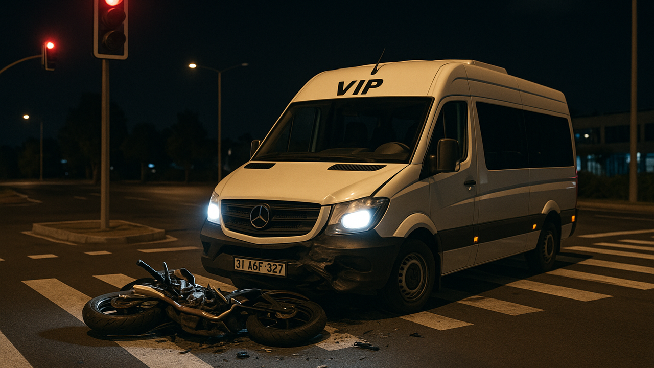Olay, dün akşam saatlerinde Antalya-Alanya D-400 Karayolu Manavgat Taşağıl Kavşağı’nda yaşandı. İshak D. (25) yönetimindeki 31 ASF 327 plakalı VIP tur minibüsü, kavşaktan dönüş yapmak isteyen Hüseyin Evren’in kullandığı 07 BMA 512 plakalı motosiklete hızla çarptı.